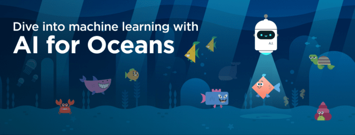 Kids can learn to code dance parties, learn about how AI and machine learning can help our world’s oceans, and solve problems in Minecraft through coding.
